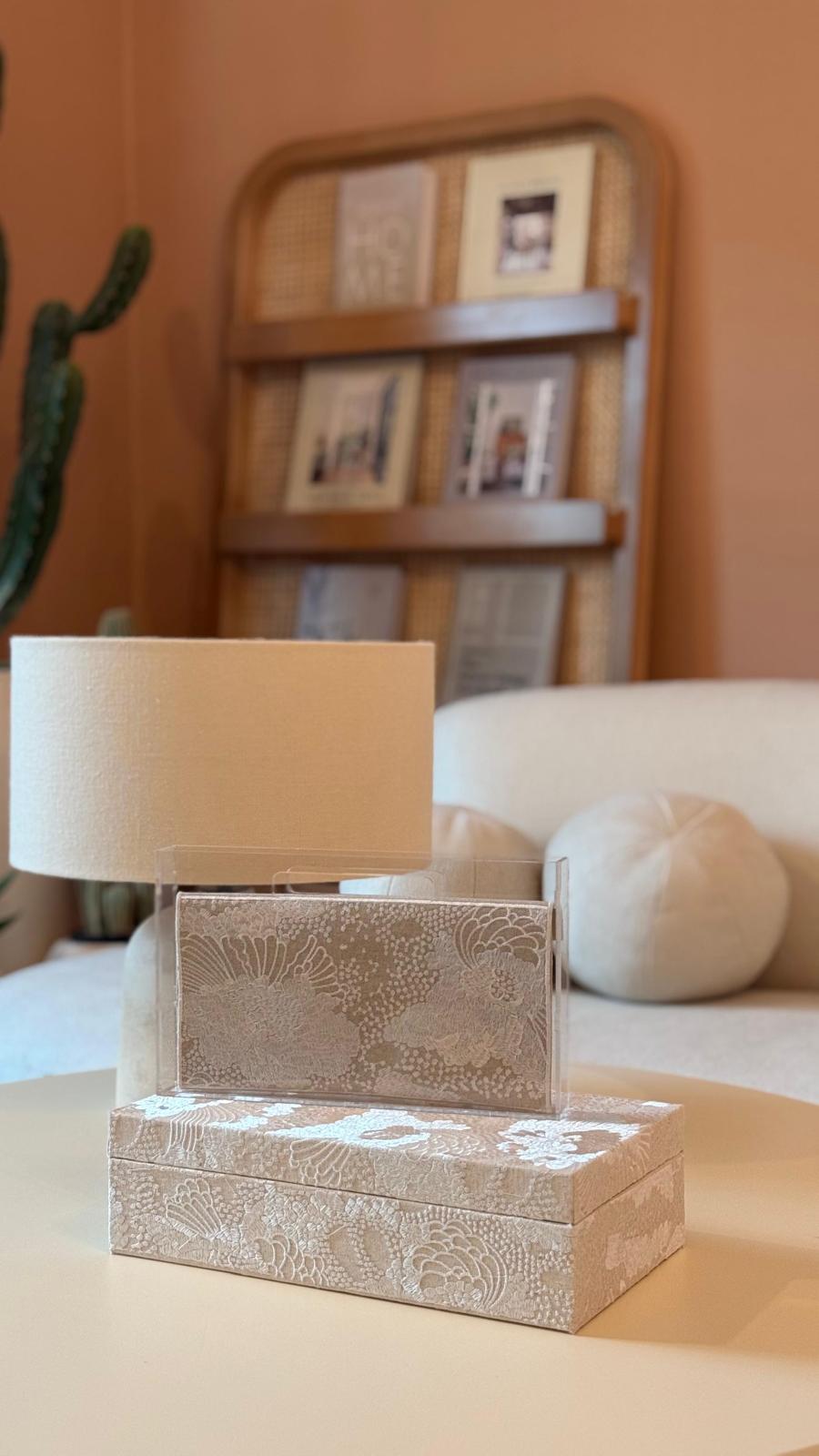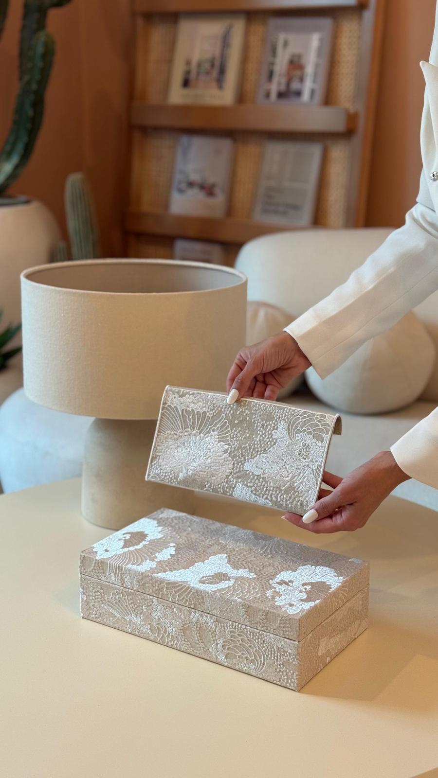 كمية ظرف قماش بيج مطرز بالأوف وايت