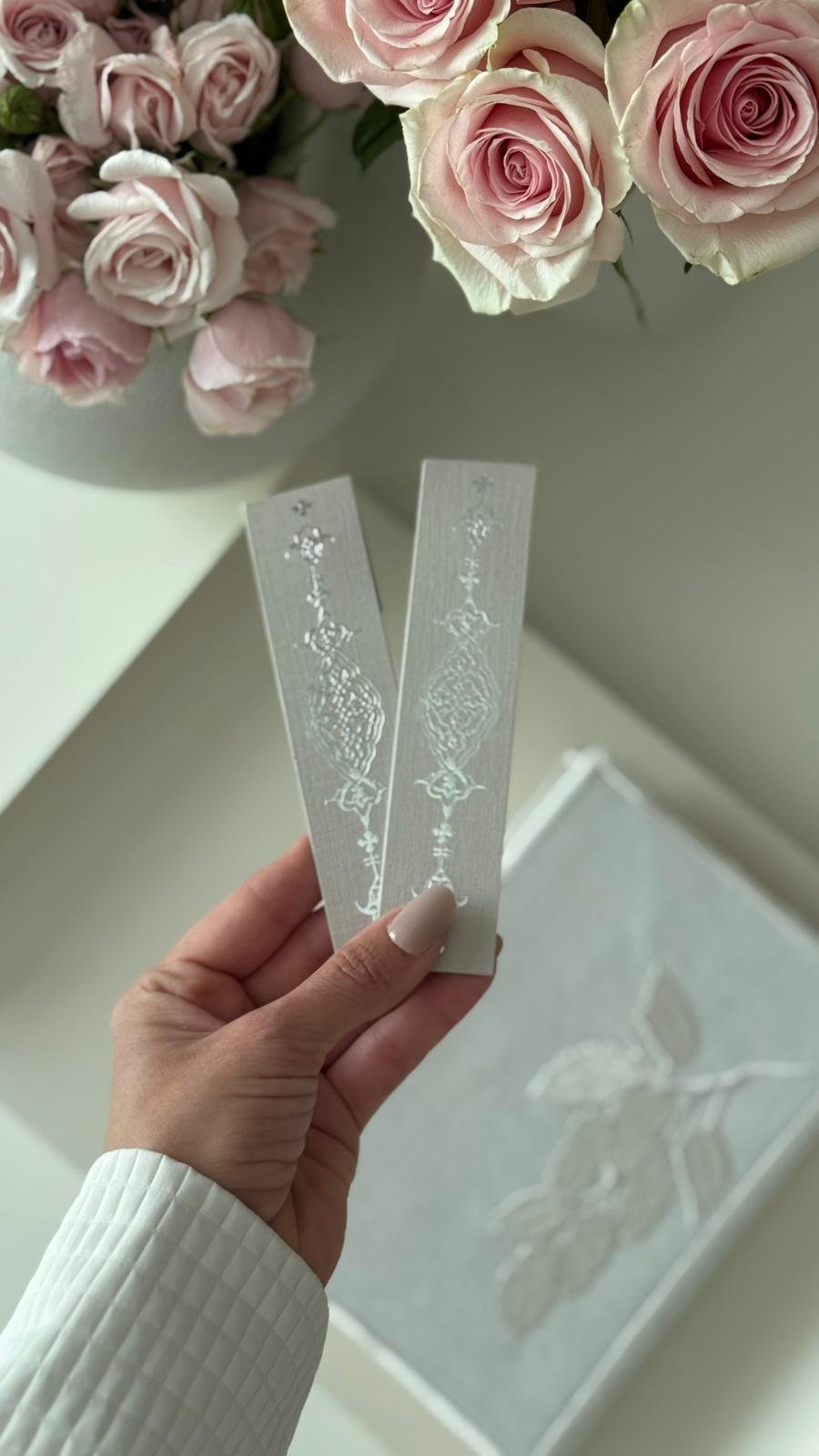 كمية فاصل كتاب من الورق الفاخر وتسكيرة مغناطيس لون رمادي بكبس فضي