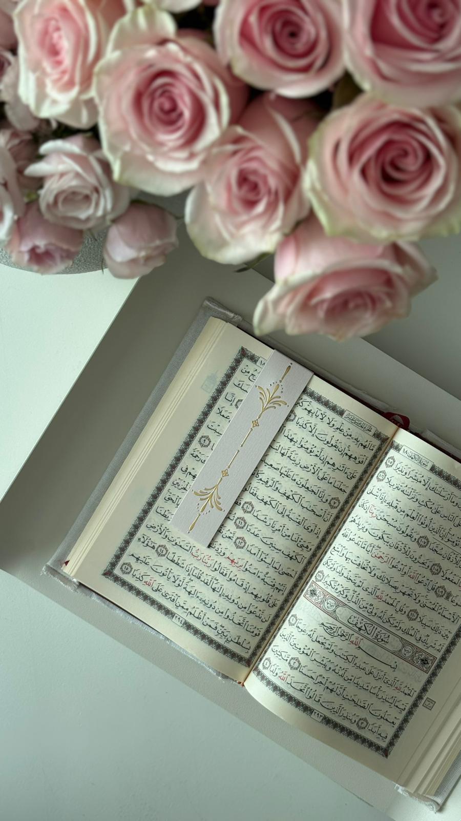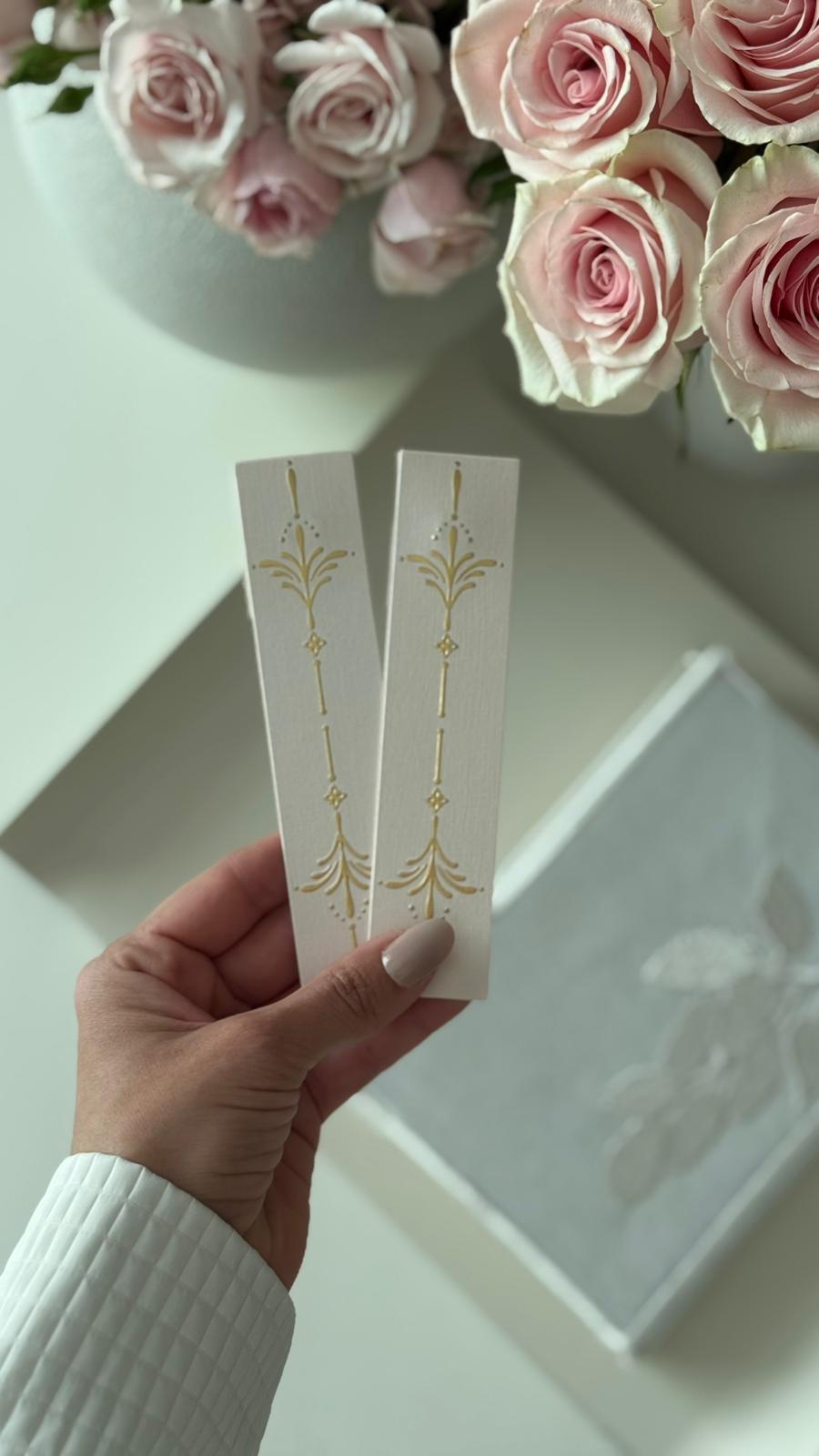 فاصل كتاب من الورق الفاخر وتسكيرة مغناطيس لون بيج فاتح بكبس ذهبي
