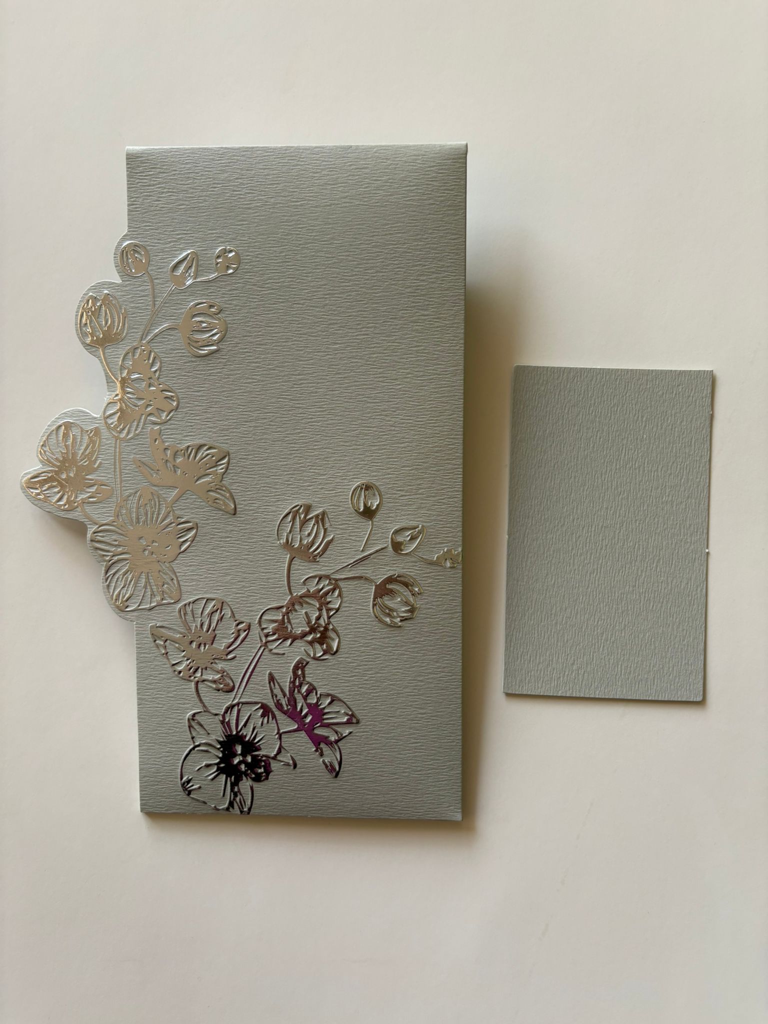 كمية مجموعة من ثلاثة أظرف ورقية فاخرة بكبس فضي بارز مع كروت صغيرة (لون رمادي)